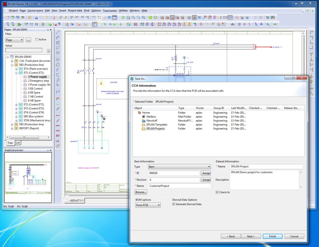 L’interfaccia avanzata tra EPLAN e Teamcenter è stata estesa e include la sincronizzazione bidirezionale anche delle librerie degli schemi elettrici e il PLM. Le sincronizzazioni possono essere impostate sia automaticamente che su richiesta. La nuova integrazione include funzioni per la creazione e l’aggiornamento dei dati dei componenti e supporta le ultime release Teamcenter. È da oggi disponibile la nuova versione dell’interfaccia EPLAN e Teamcenter, che offre nuove funzionalità, tra cui la sincronizzazione delle parti a catalogo. Questa funzione rende possibile la gestione del database delle parti di EPLAN direttamente all’interno di Teamcenter, il più diffuso software di gestione del ciclo di vita del prodotto (PLM) al mondo. I dati del progetto da EPLAN possono ora essere editati direttamente in Teamcenter: il modulo integra perfettamente le soluzioni della piattaforma EPLAN nell’ambiente PLM. In questa maniera anche i dati provenienti dalla progettazione elettrica diventano parte del modello digitale. Le Informazioni che derivano dalla progettazione elettrica, come le liste di connessione, le distinte base, gli schemi di costruzione confluiscono con tutte le altre informazioni del prodotto permettendo il controllo totale del progetto sia meccanico che elettrico.