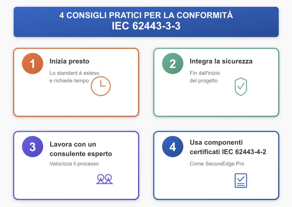 I requisiti IEC sono specifici e basati sulle migliori prassi del settore, riducendo concretamente il rischio di incidenti di sicurezza.