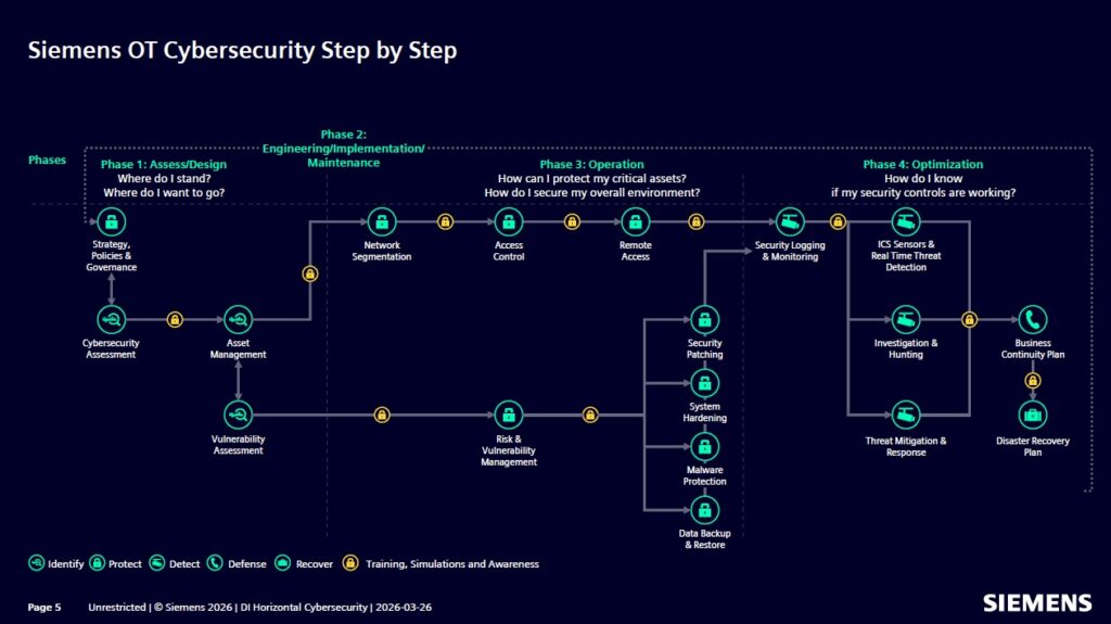 In questo ambito si inserisce il portfolio Siemens, che integra soluzioni per la gestione delle vulnerabilità, la segmentazione delle reti e l’accesso remoto sicuro. Tra queste, il software Sinec per il monitoraggio della postura di sicurezza, l’hardware Scalance per la protezione delle reti, Sinema Remote Connect per la gestione degli accessi remoti e Sinec Secure Connect, basata sul paradigma Zero Trust per una connettività OT sicura.
