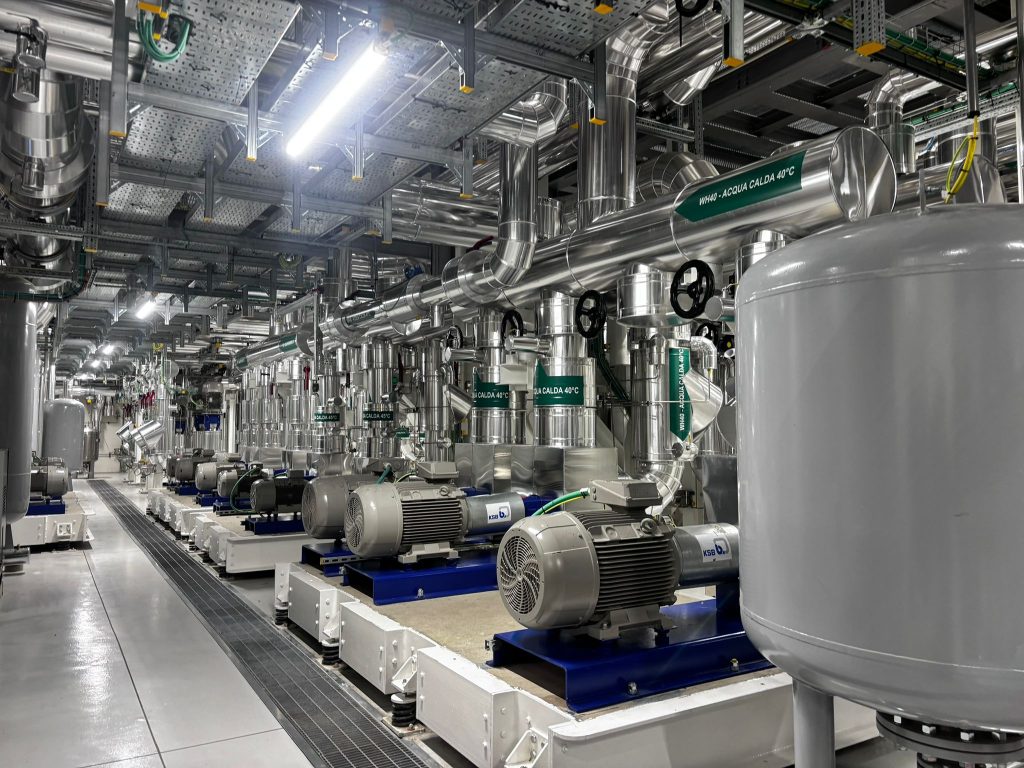 C'è un’area del plant che impressiona in particolare per la complessità: è l’impianto di distribuzione dell'acqua refrigerata calda - a diverse temperature - che serve tutti gli impianti presenti nel sito (sistemi di condizionamento, macchine di produzione e così via). Parliamo di qualche migliaio di chilometri di tubi in giro per l'edificio.