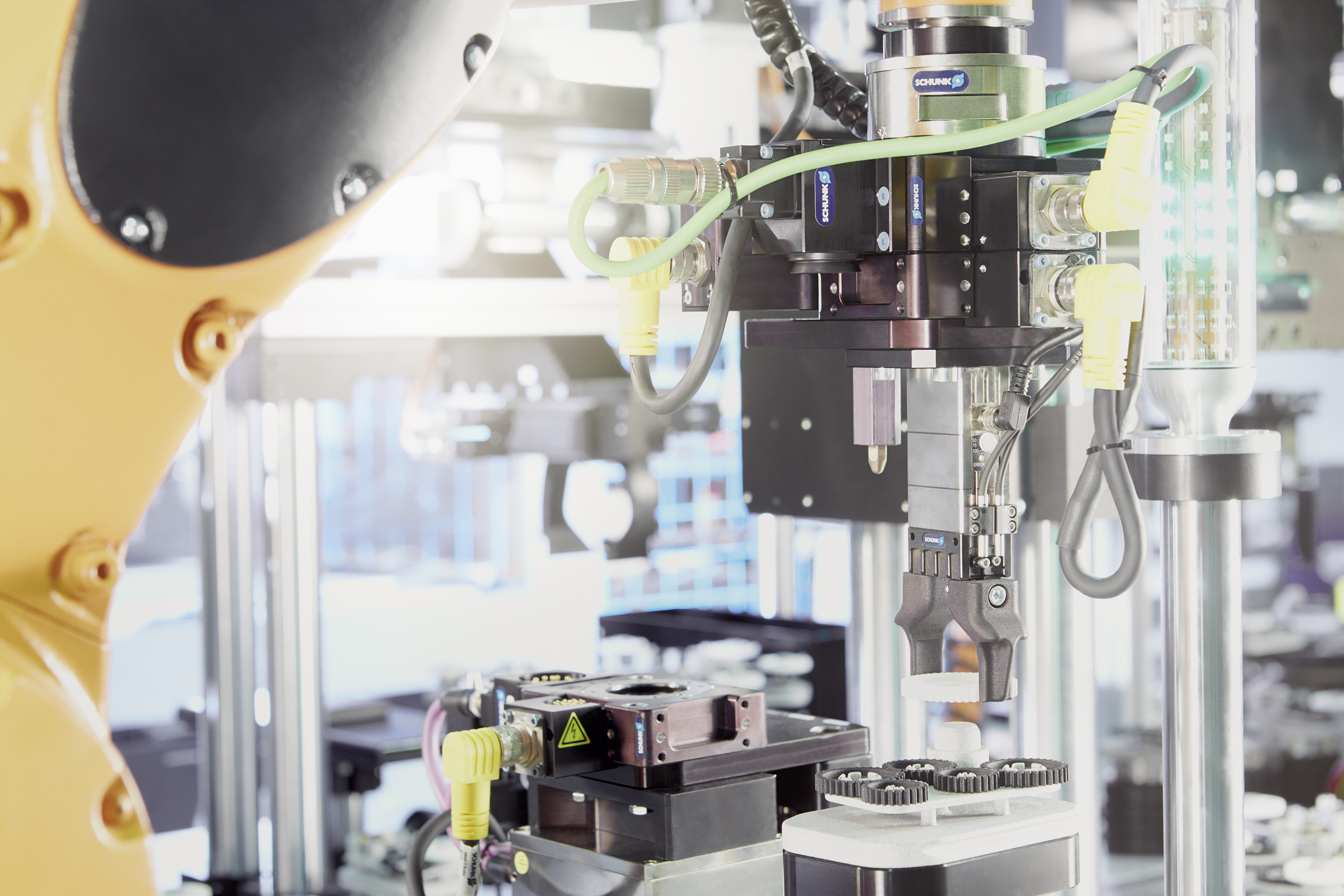 Secondo il Dr. Markus Klaiber, un fattore chiave per il successo di Industria 4.0 è una comunicazione perfetta, che vada oltre le gerarchie di comunicazione che negli anni ottanta si sono diffuse nei centri di produzione automatizzati. "Con Industria 4.0 tutto comunica con tutto" sottolinea Klaiber. In questo contesto svolgono un ruolo determinante sia i moduli di presa che altri attuatori e i relativi sensori, perché in ultima analisi sono loro che costituiscono l'interfaccia diretta con il pezzo, il componente o il prodotto finito. "La pinza SCHUNK è il primo modulo che, dopo la lavorazione, viene a contatto con il pezzo. In futuro essa avrà l'intelligenza necessaria per riconoscere se le specifiche di tolleranza, peso o dimensioni sono state rispettate". In base a questi dati sarà quindi possibile continuare il processo come programmato, oppure avviare cicli correttivi di controllo qualità oppure escludere i pezzi difettosi.