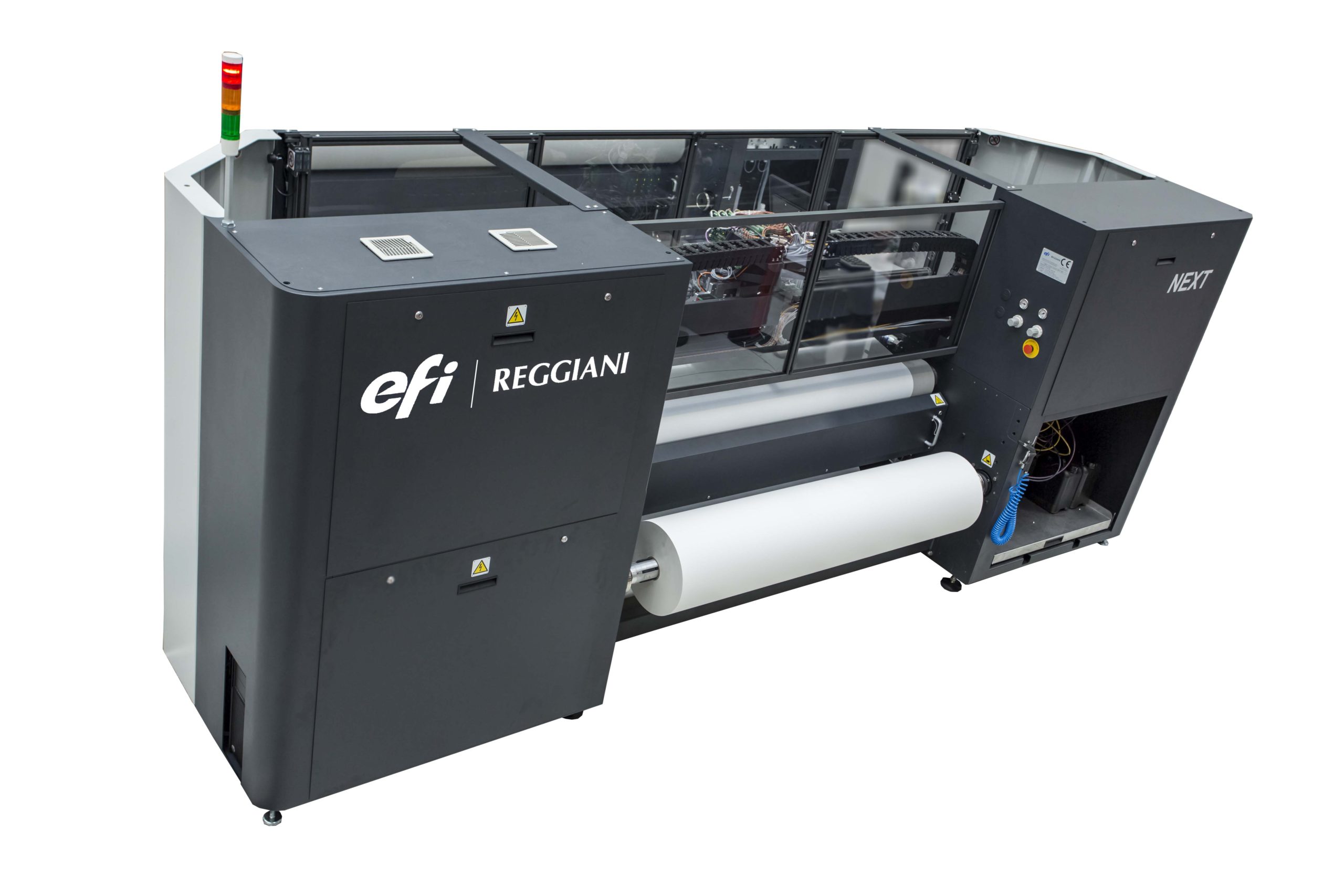 Dall’acquisizione avvenuta nel 2015 tra l’azienda bergamasca e il gruppo americano EFI, punto di riferimento mondiale nella stampa digitale. Dal punto di vista industriale oggi EFI Reggiani è così in grado di offrire al mercato macchine da stampa con altezze utili da 180 cm fino a 520 cm, disponibili con tappeto o senza tappeto (per il supporto del substrato) e un numero variabile di teste di stampa da 2 a 32 (fino a 8 colori). Una vasta gamma di modelli sui quali, da qualche tempo, trovano largo impiego anche motori e guide lineari HIWIN.