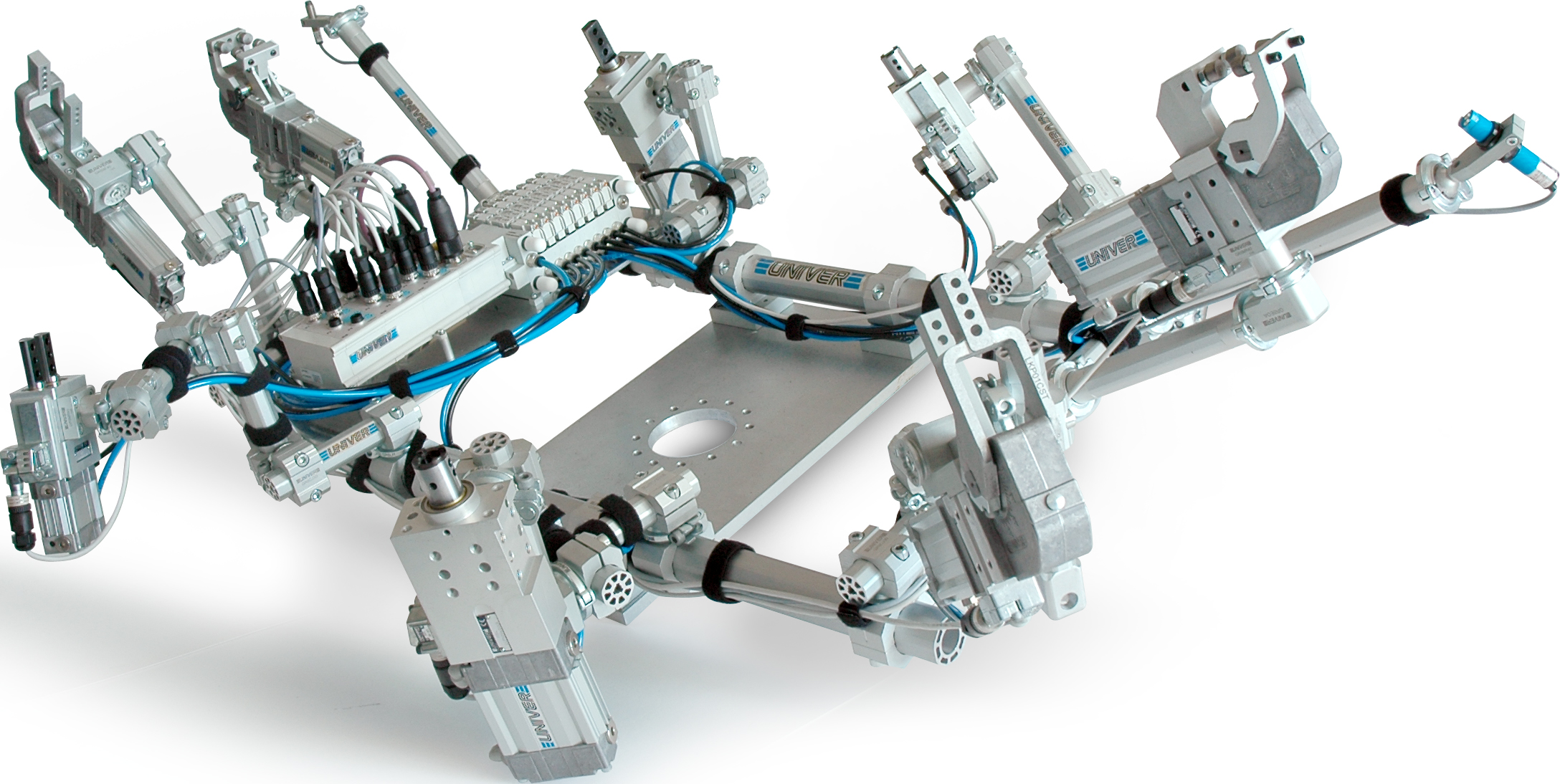 GR8 FONDO BIANCOUNIVER presenta il nuovo sistema di manipolazione modulare GR8, all’avanguardia tra i sistemi EOAT (End of Arm Tooling). Ideato per rispondere all’esigenza del mercato Automotive di un sistema di manipolazione che fosse leggero, efficiente e adatto ad applicazioni che richiedono flessibilità, il sistema GR8 unisce illimitate possibilità di configurazione ad un’estrema precisione di posizionamento offrendo così una soluzione perfetta. Il sistema GR8 nasce dall’esperienza UNIVER nella progettazione e realizzazione di soluzioni per gli impianti di lastratura nel settore Automotive ed è oggi presente in tutto il mondo sulle linee produttive di rinomate case automobilistiche. Grazie all’elevata precisione di posizionamento e alla sua massima rigidità, il sistema GR8 soddisfa pienamente i requisiti dell’industria automobilistica ed è altresì adatto a moltissime applicazioni industriali di picking, dal food&beverage al packaging, dal wood&glass ai CD/DVD. Il sistema GR8 è una soluzione originale UNIVER, che produce direttamente anche tutti i componenti e i prodotti complementari installabili, come unità di bloccaggio, valvole e cilindri. UNIVER segue direttamente lo sviluppo di ogni sistema GR8, dal disegno di progettazione alla validazione dell’applicazione del cliente, dalla costruzione all’installazione in loco. I vantaggi offerti dal sistema GR8 sono molteplici. La modularità e l’orientamento illimitato nello spazio permettono di ridurre il numero di elementi necessari alla costruzione della struttura e concedono ampia libertà di configurazione. Inoltre, l’assenza di saldature o spinature rende l’installazione veloce, facilitando anche regolazioni in fase di set-up o successive modifiche. I componenti sono connessi da un anello di bloccaggio innovativo che garantisce una massima accuratezza senza ridurre la flessibilità di configurazione. Grazie all’elevata qualità della struttura e dei componenti, non è richiesta manutenzione straordinaria.