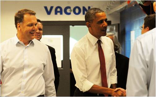 Il Presidente degli USA, Barack Obama, visita lo stabilimento Vacon nel...